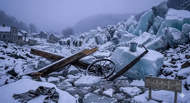 As the rapidly rising water surged beneath the frozen river, it applied immense upward pressure. The river did not melt; it exploded. The sound, described by contemporary observers as a "continuous, rolling artillery fire," signaled the breaking of the ice sheet into jagged, multi-ton blocks.