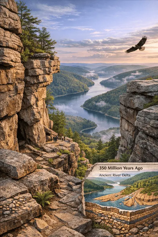 This high, rugged plateau was never scrubbed raw by the towering ice sheets that defined much of North America during the last Ice Age. Instead, it is an ancient landscape, millions of years older than the smooth, rolling hills found just miles to the north. Jakes Rocks provides a dramatic and primary window into this "deep time" history of the Allegheny Highlands—a narrative of massive ancient rivers, catastrophic deposition, and hundreds of millions of years of uninterrupted erosion.
