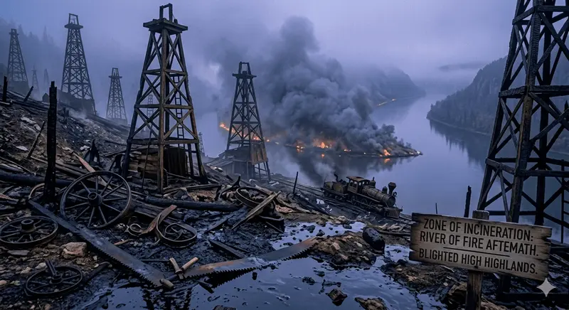 The environmental chaos reached its horrifying apex in the legendary incident known as the "River of Fire."