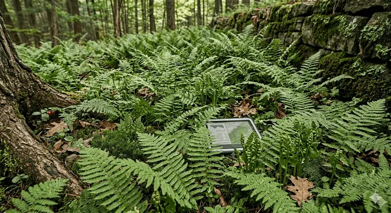The Fern Companion: They thrive in the shadow of larger, more common ferns (like the Interrupted Fern and Sensitive Fern also visible in image_32.png).