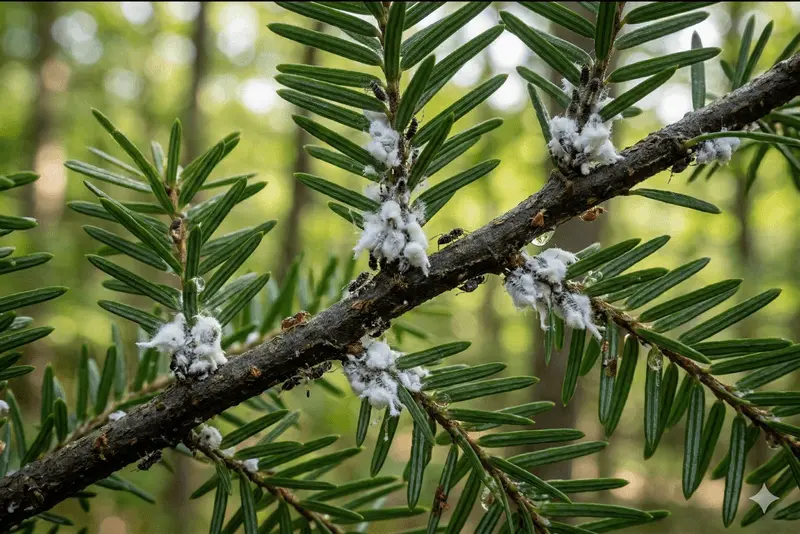 The Signature: You can spot an infestation by looking at the underside of the branches. In winter and spring, the adelgids cover themselves in a white, waxy secretion that looks like tiny cotton swab tips or "wool."