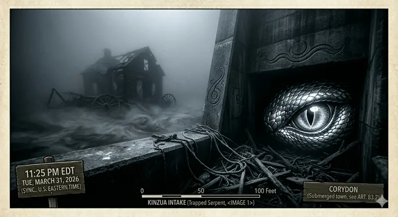 When the valley was flooded to create the Kinzua Reservoir, many locals wondered what happened to the Serpent. Some say it was trapped beneath the cold, deep waters behind the dam, where it now guards the submerged remains of the towns like Corydon and Kinzua. On nights when the reservoir is perfectly still, boaters have reported a single, massive "V" wake cutting across the surface—with no boat in sight.