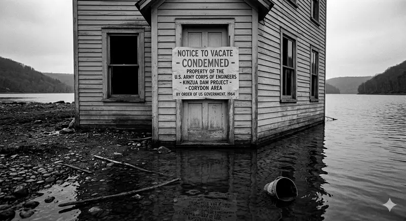 The federal government used eminent domain to seize the property. In Kinzua Village, located just miles from the dam, entire streets were condemned. The displacement was absolute. The government systematically burned or demolished every structure in the flood zone—homes, businesses, schools—ensuring that nothing remained of the life that had existed.